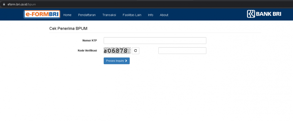Cek online apakah anda menjadi penerima blt. Para calon penerima mengakses laman bri.co.id, dengan memasukkan nomor ktp beserta kode verifikasinya. Diharapkan 3 juta ini penerima inilah yang akan masuk dalam bpum tahap 2. Scroll ke bawah kemudian klik bpum (cek data bpum). Over the time it has been ranked as high as 5 099 in the world, while most of its traffic comes from indonesia, where it reached as high as 119 position. Eform.bri.co.id is ranked #0 in the finance/banking credit and lending category and #0 globally. Berikut juga cara daftar bpum. Untuk mengetahuinya, cek di situs eform.bri.co.id. Home bri news buka eform.bri.co.id/bpum untuk cek penerima bantuan presiden usaha mikro lewat hp tanpa. Untuk verifikasi dan pencariannya bisa menghubungi kantor bri terdekat membawa bukti ektp. Padahal sebelumnya, nama yang tercantum dalam situs eform.bri.co.id/bpum itu sudah pasti mendapat bantuan umkm sebesar rp 2,4 juta. 1.bri ditunjuk oleh pemerintah sebagai bank penyalurbanpres produktif untuk usaha mikro (bpum) dan perseroan telah mengirimkan sms notifikasi kepada para penerima bantuan untuk memudahkan masyarakat. Cara cek penerima bantuan bpum para pelaku usaha mikro yang nik ktp mereka tidak ada di eform.bri.co.id/bpum masih bisa dapat bantuan blt umkm rp 1,2 juta dengan cara.